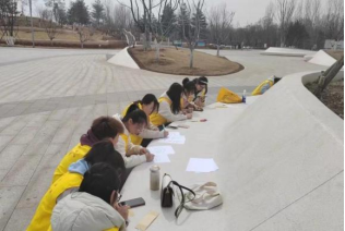 1.春日行动准备曲:书写标语,进行植绿宣传。
