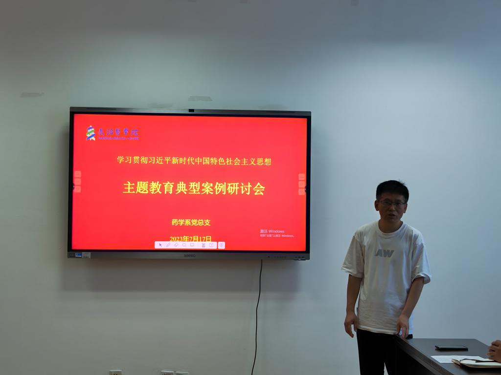 7月17日上午,药学系党总支在科技楼药学系学术报告室召开了学习贯彻习近平新时代中国特色社会主义思想主题教育典型案例研讨会,药学系党总支理论学习中心组成员、全体博士教师、教研室主任和辅导员参加会议。会议由药学系主任贺艳斌主持。