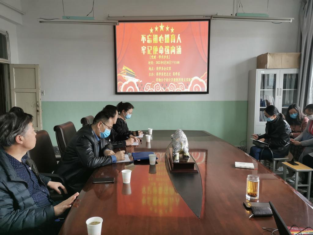 330日下午,药学系“不忘初心抓育人 牢记使命强内涵”党建·学术沙龙第十期在药学系会议室举行。公司党委第三巡察组成员、药学系主任宋丽华、党总支书记李俊波、全体在职党员2020年以来入职的青年教师参加活动。